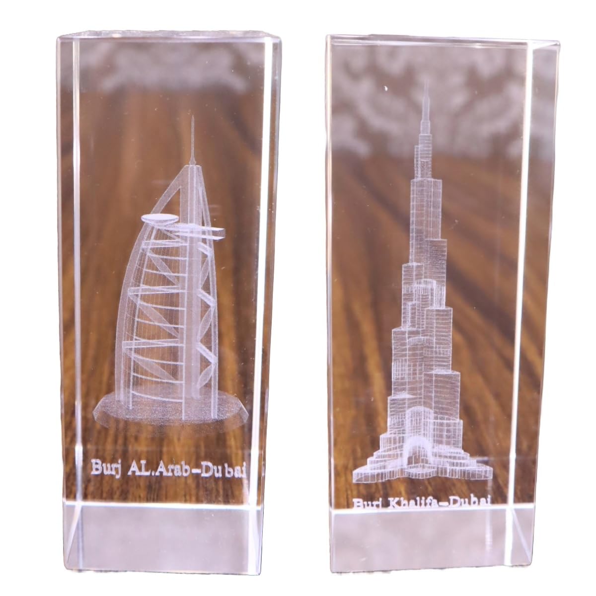 - Laser Engraved Burj Khalifa & Burj Al Arab Crystal Paper Weight Souvenir