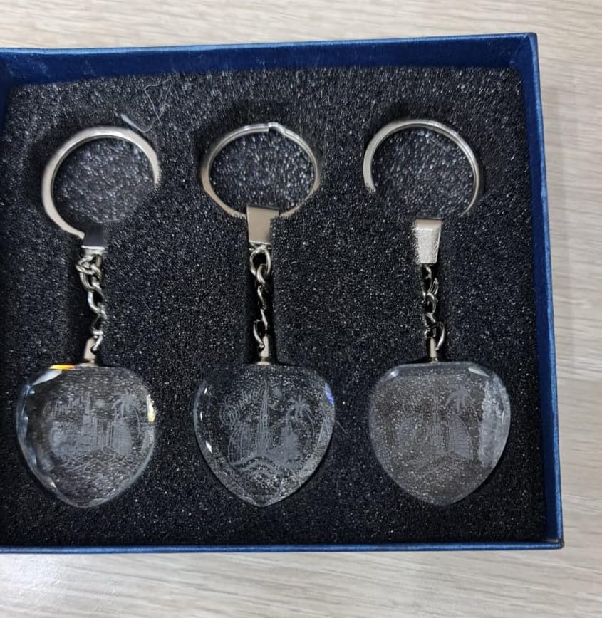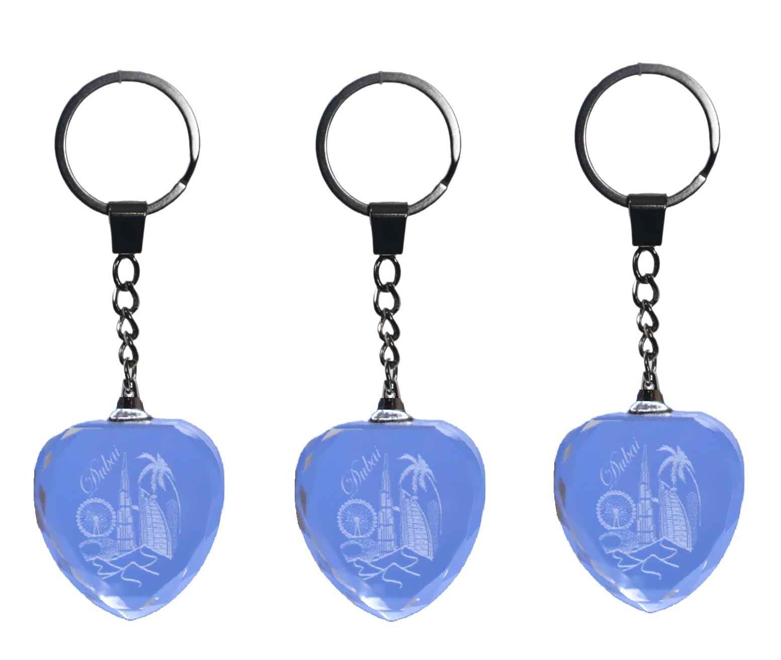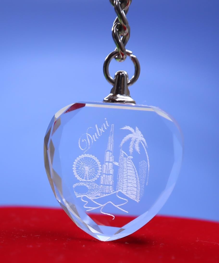 Crystal Glass Paperweight Dubai Abu Dhabi Engraved Souvenirs 3D Model | Office Home Decoration Figurines Art & Collectible with Gift Packing (Heart_3in1_Key_chain)