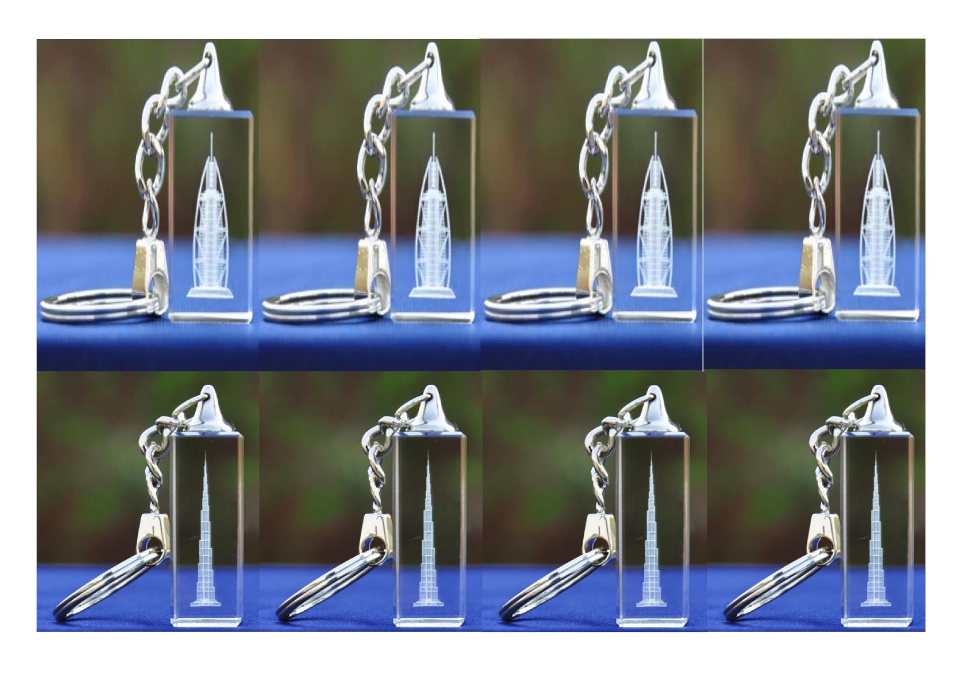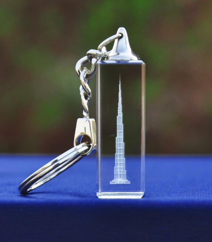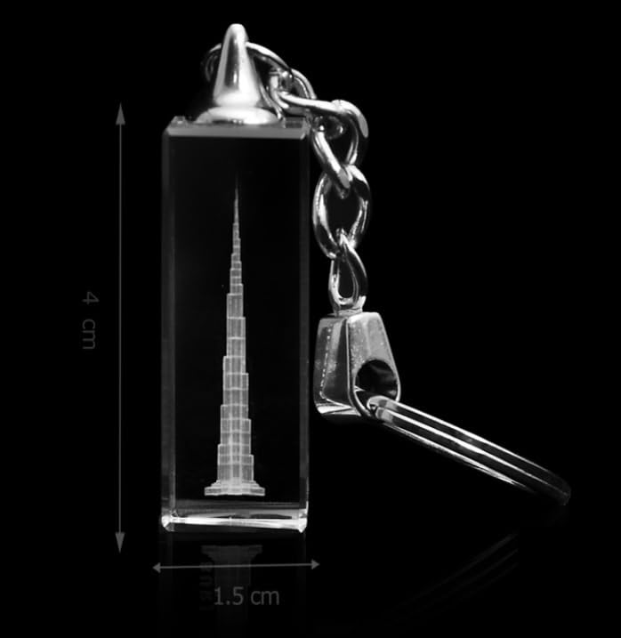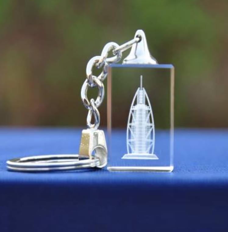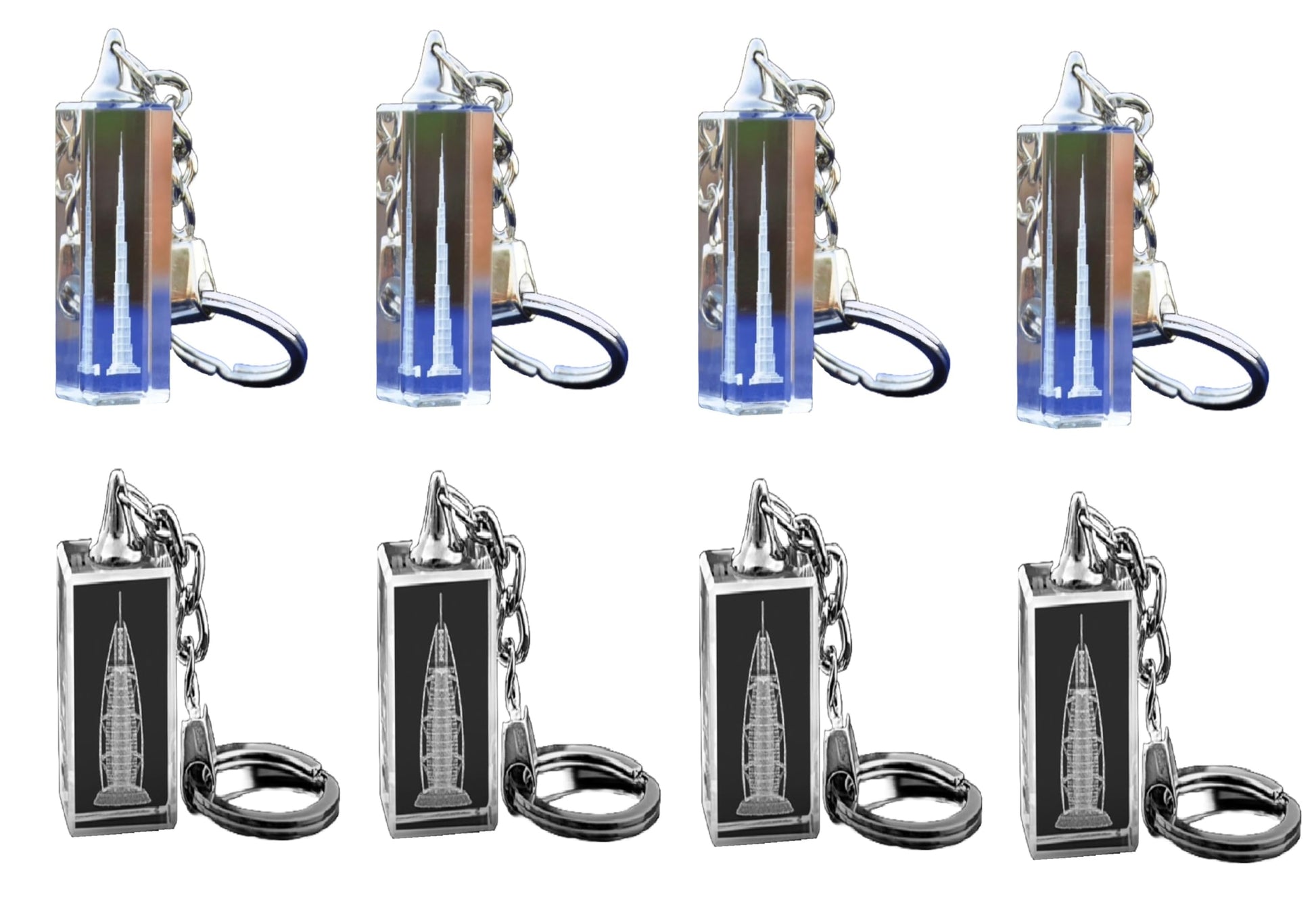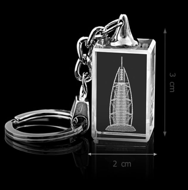 Crystal Glass Paperweight Dubai Abu Dhabi Engraved Souvenirs 3D Model | Office Home Decoration Figurines Art & Collectible with Gift Packing (Key_Chain_8in1)