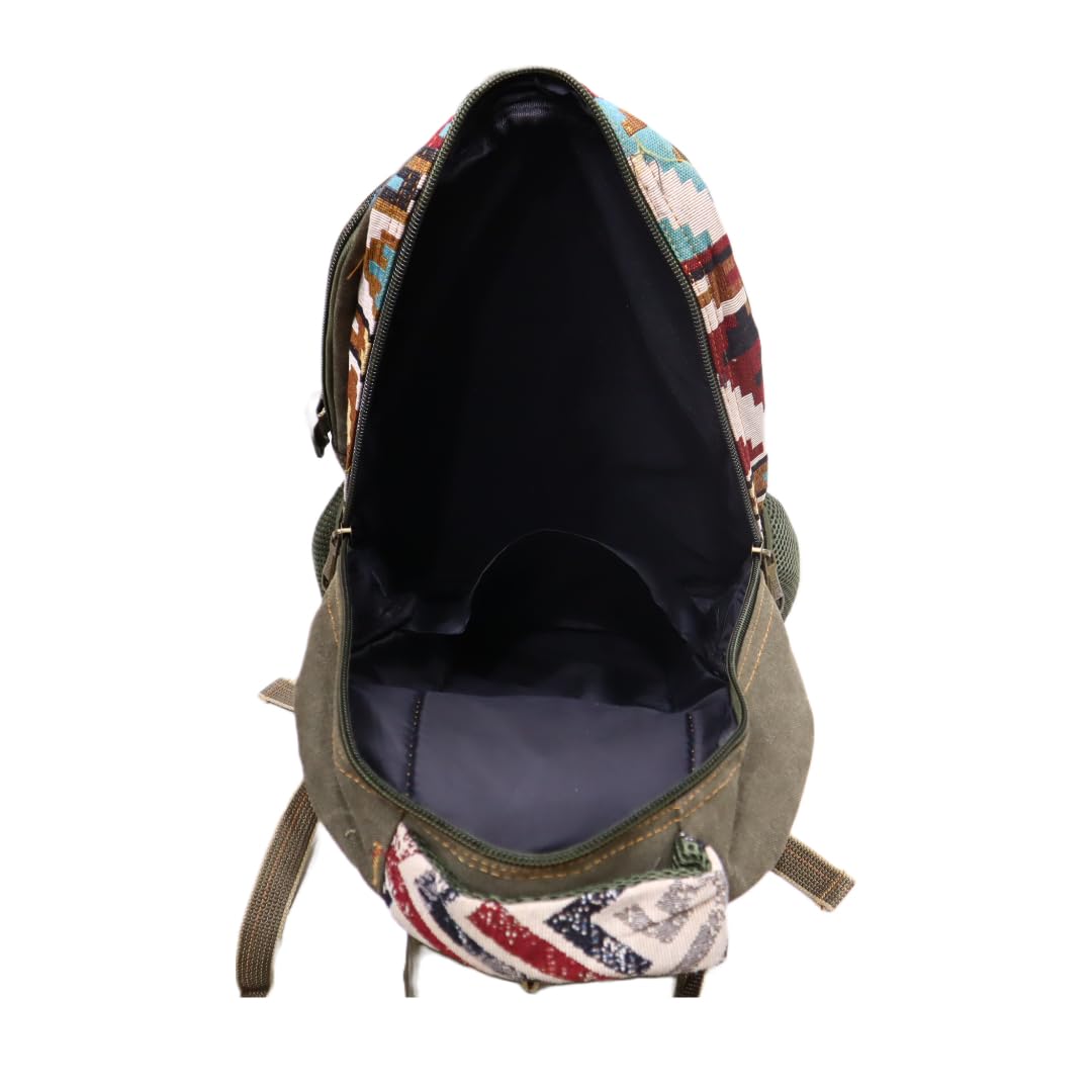 - Two main compartments with zip closure. The bigger compartment has a laptop interval, 1 front pocket, 1 pocket on the bottom and 2 water bottle net pouches on each side
