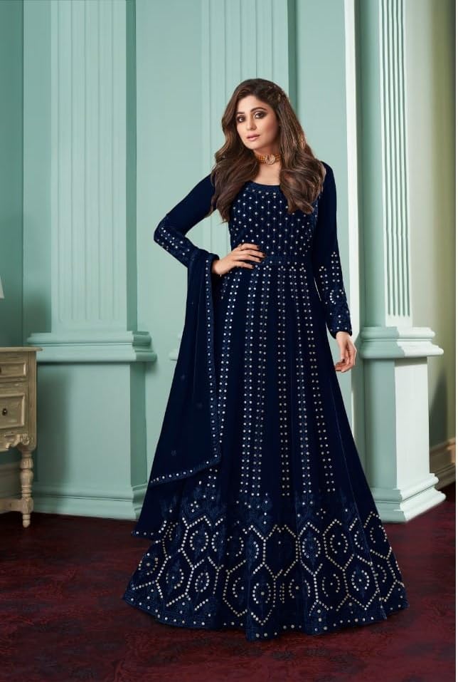 Finest Unstitched Gown Collection from India. These unique suits are beautiful fancy stylish party wear dresses. Look gorgeous, fashionable and elegant. You can stich it to the best fit size. Extra laces, hangings & accessories are not included. Do not bleach. Dry Clean