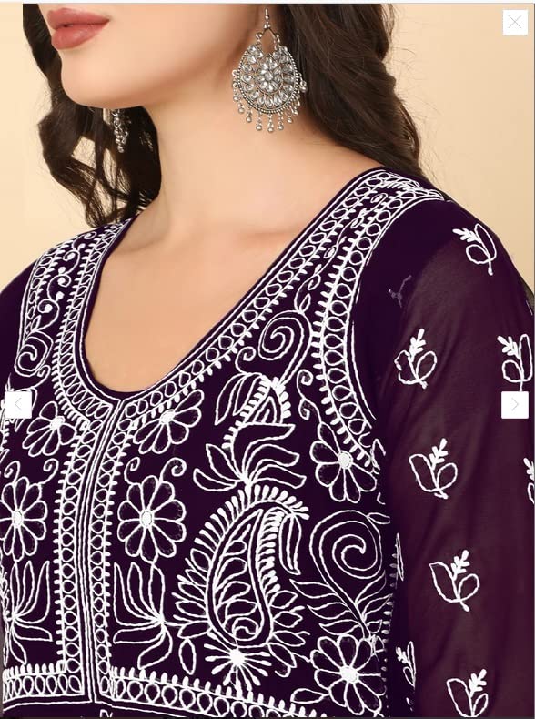 - Anarkali has a Round neck, 3/4 sleeves , Thread work detail, Ankle length with flared hem. Trouser Pants not included