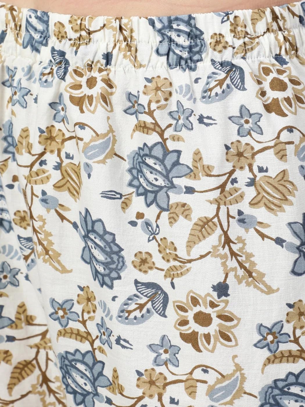 - Printed trousers, has a partially elasticated waistband with slip-on closure