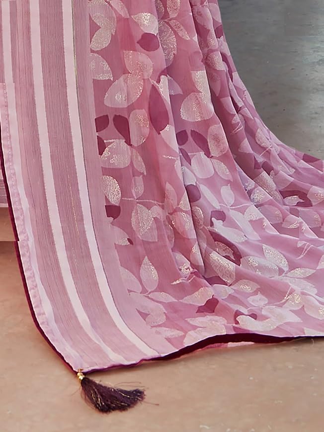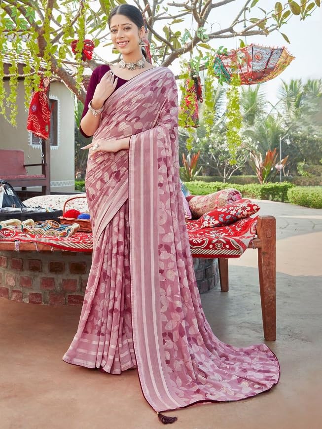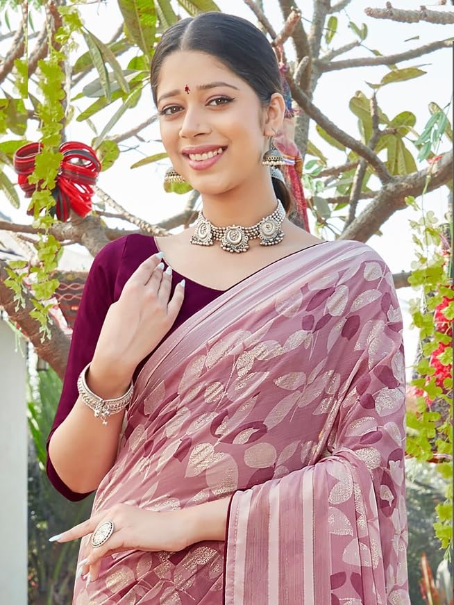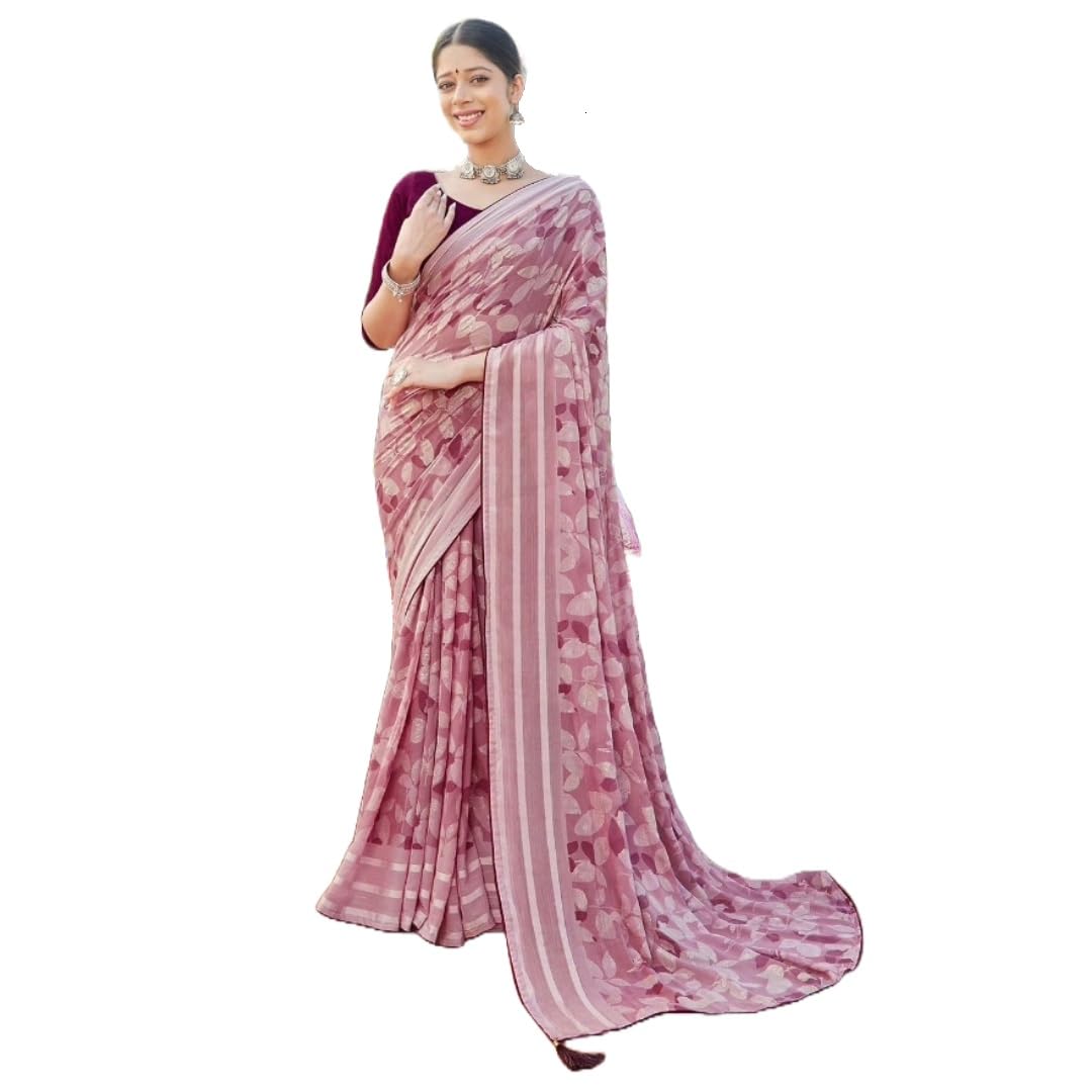 Women Chiffon Saree with Unstitched Blouse Piece | Ladies Traditional Wedding Festival Party Dress