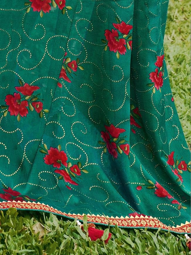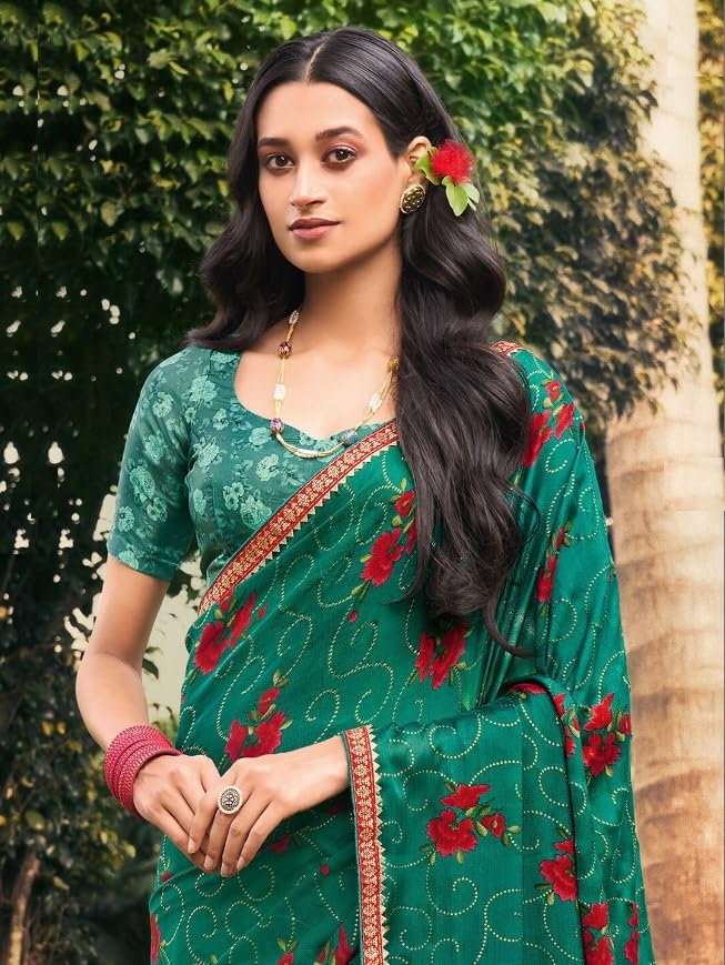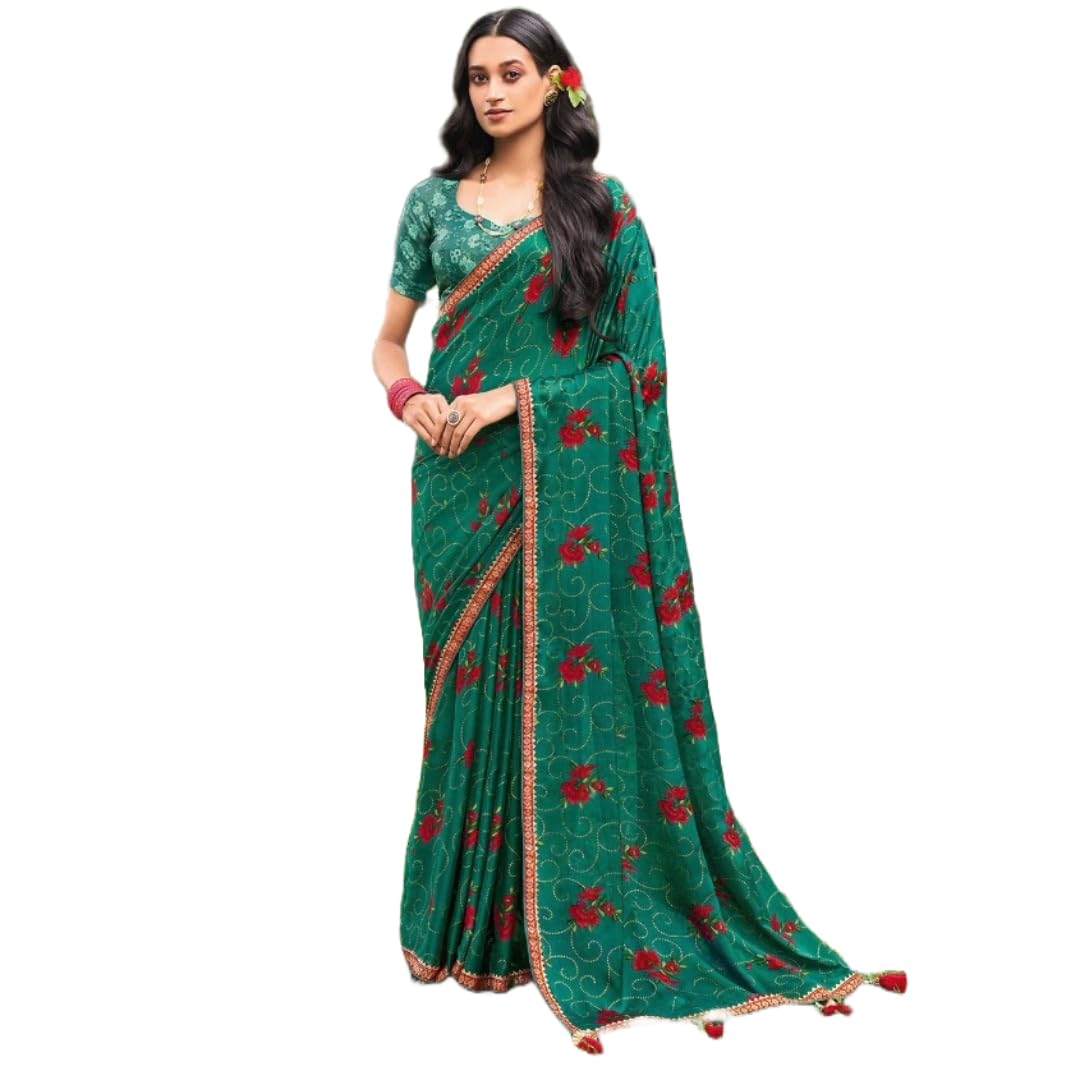 Women Chiffon Saree with Unstitched Blouse Piece | Ladies Traditional Wedding Festival Party Dress