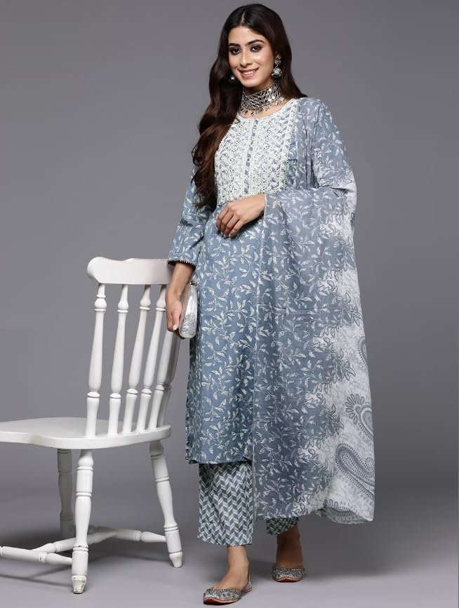 Women Cotton Kurta Palazzo Set with Dupatta | Ladies Top Kurti Kameez with Bottom Pant | Traditional Ready to Wear Dress