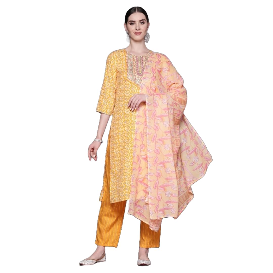 Women Cotton Kurta Palazzo Set with Dupatta | Ladies Top Kurti Kameez with Bottom Pant | Traditional Ready to Wear Dress