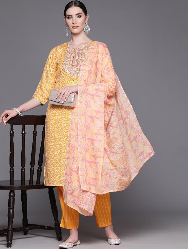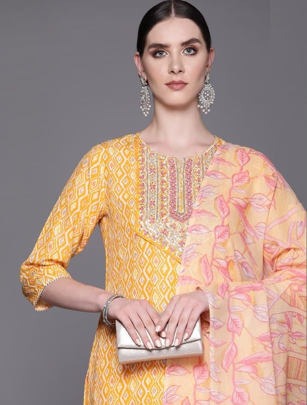 Festive Kurta Set with Dupatta is versatile to wear for a special event. Accessorize this with sparkly earrings and bangles for a tradional function.