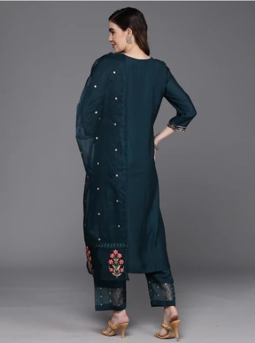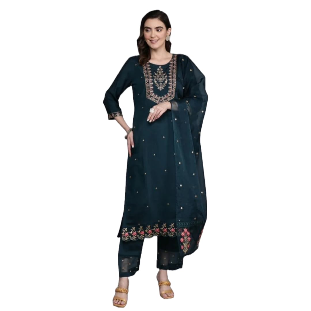 Women Embroidered Kurta Palazzo Set with Dupatta | Ladies Top Kurti Kameez with Bottom Pant | Traditional Festive Party Dress Ready to Wear