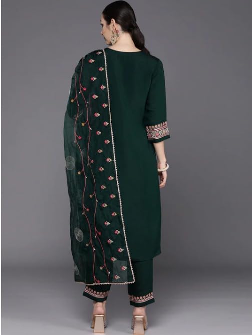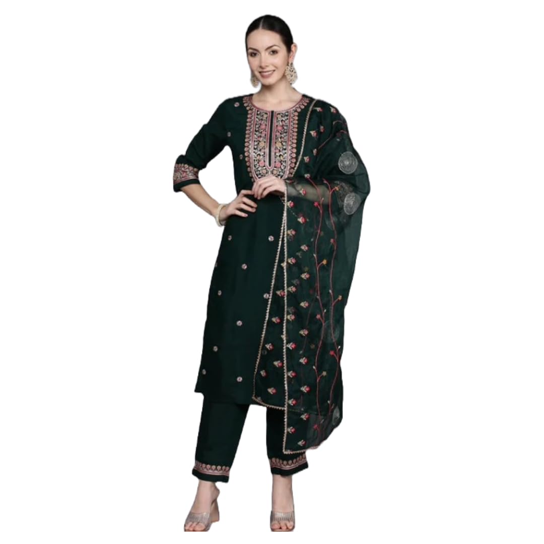 Women Embroidered Kurta Palazzo Set with Dupatta | Ladies Top Kurti Kameez with Bottom Pant | Traditional Festive Party Dress Ready to Wear