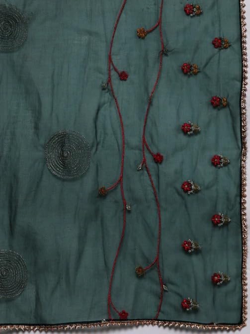 - Kurta has Floral embroidered, Zari detail, Straight shape, Round neck, 3/4 sleeves, Calf length length with straight hem