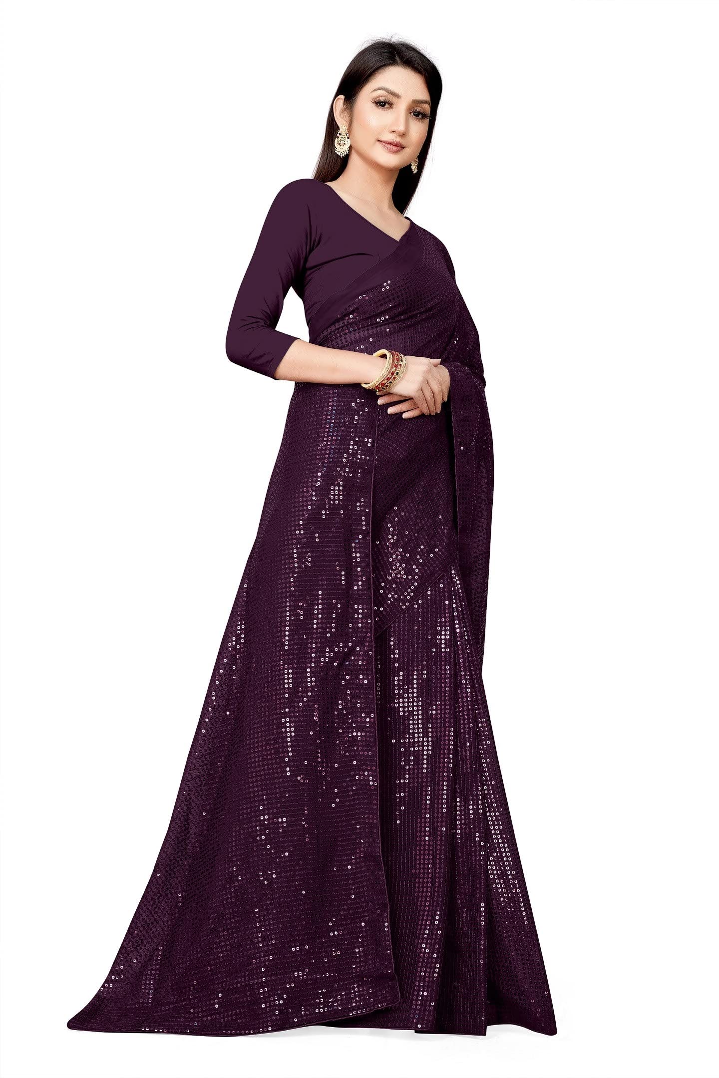· Pattern: Solid Embellished Sequin Work Designer Sarees