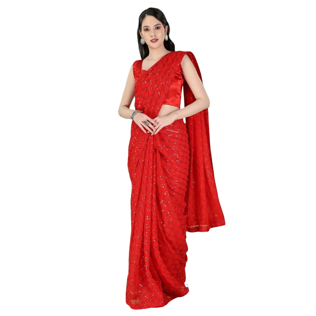 Women Georgette Saree with Unstitched Blouse Piece | Ladies Traditional Wedding Festival Party Dress