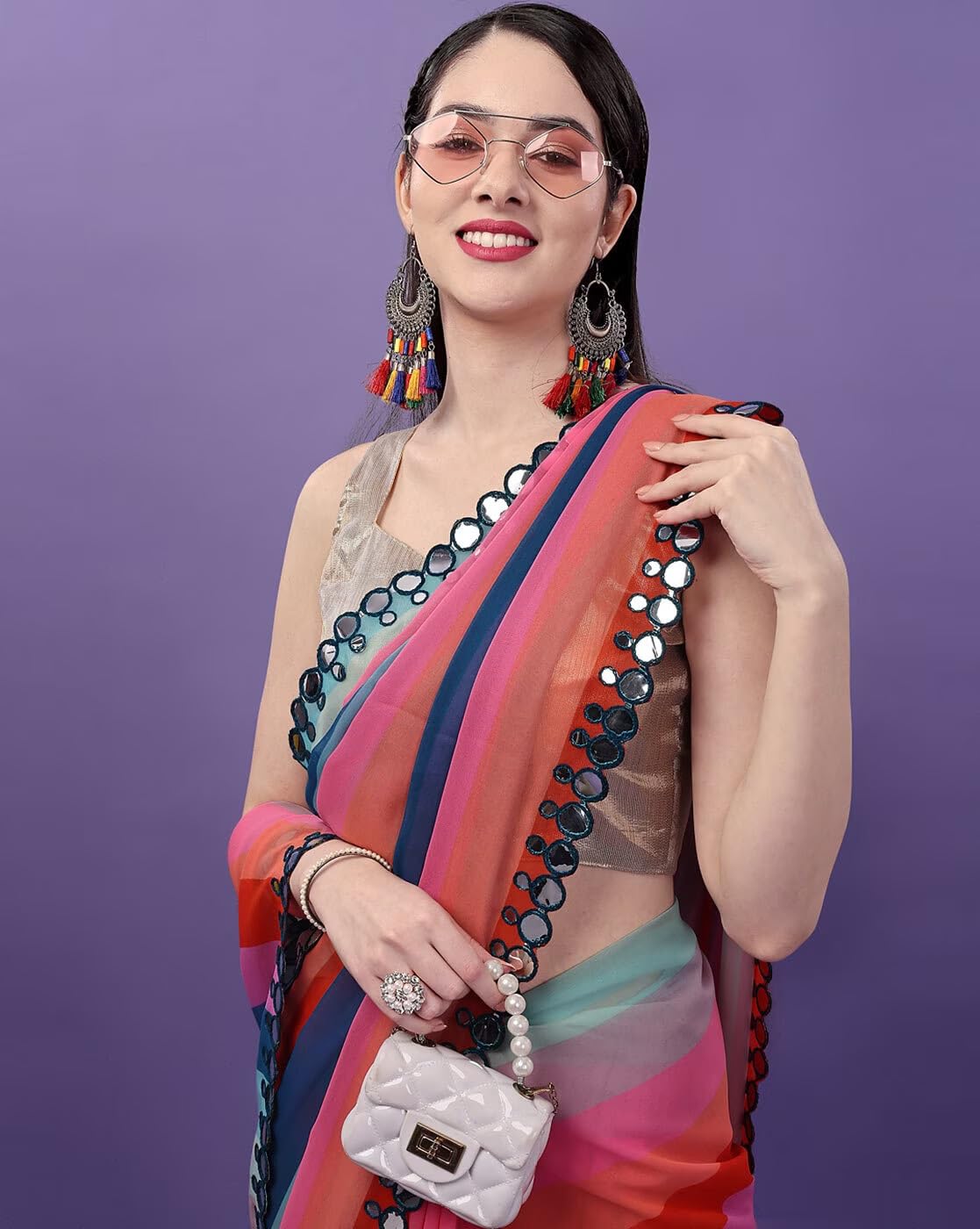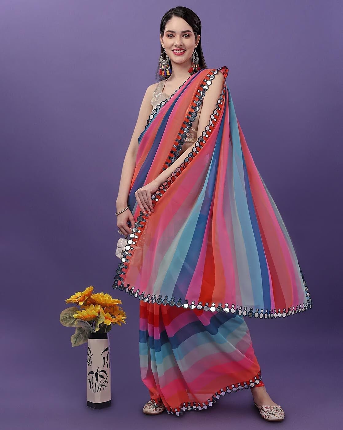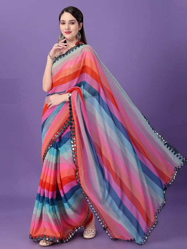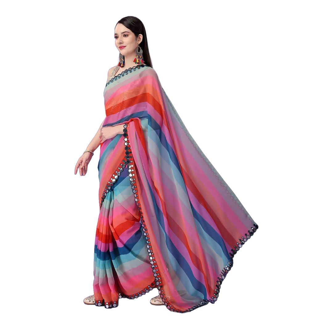 Women Georgette Saree with Unstitched Blouse Piece | Multicolor Traditional Wedding Festival Dress