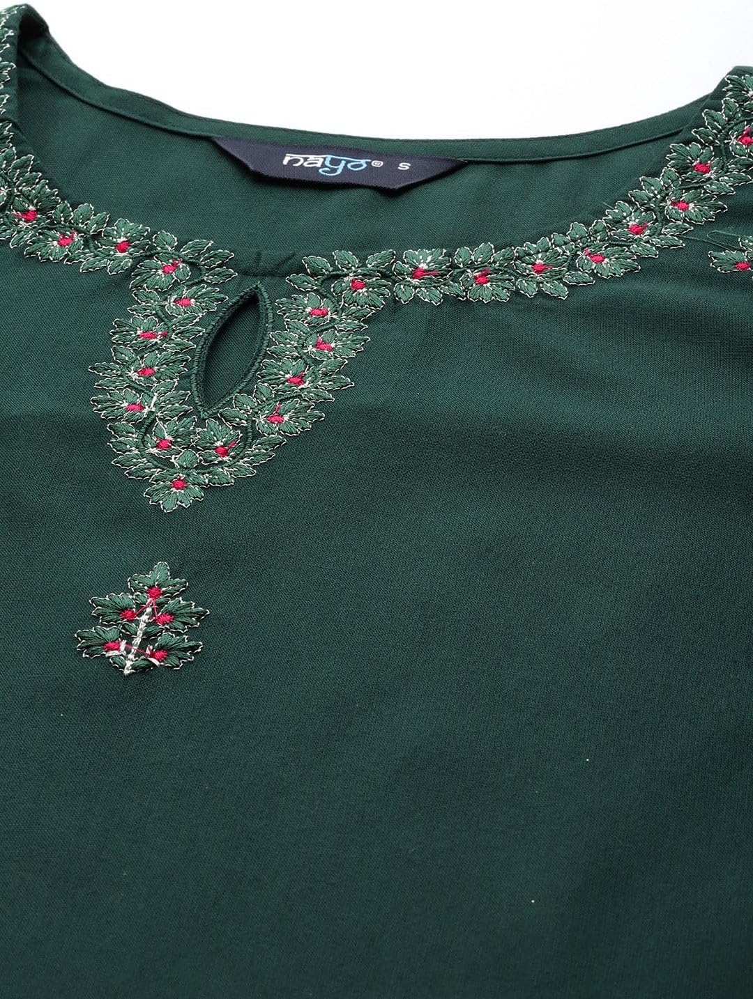 - Ethnic Motifs Printed Straight Kurta with sequence work, round neck, 3/4 sleeves, calf length with straight hem