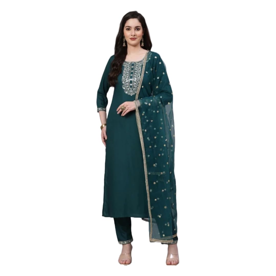 Women Kurta with Dupatta and Palazzo Set | Ladies Top Kurti Kameez Salwar Suit Bottom Pant | Ethnic Indian Pakistani Party Dress | Festive Traditional Ready to Wear