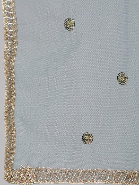 - Printed palazzos, has a partially elasticated waistband with slip-on closure. Net dupatta