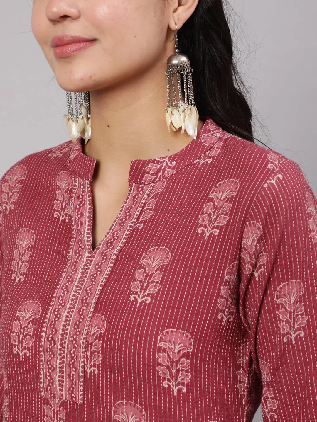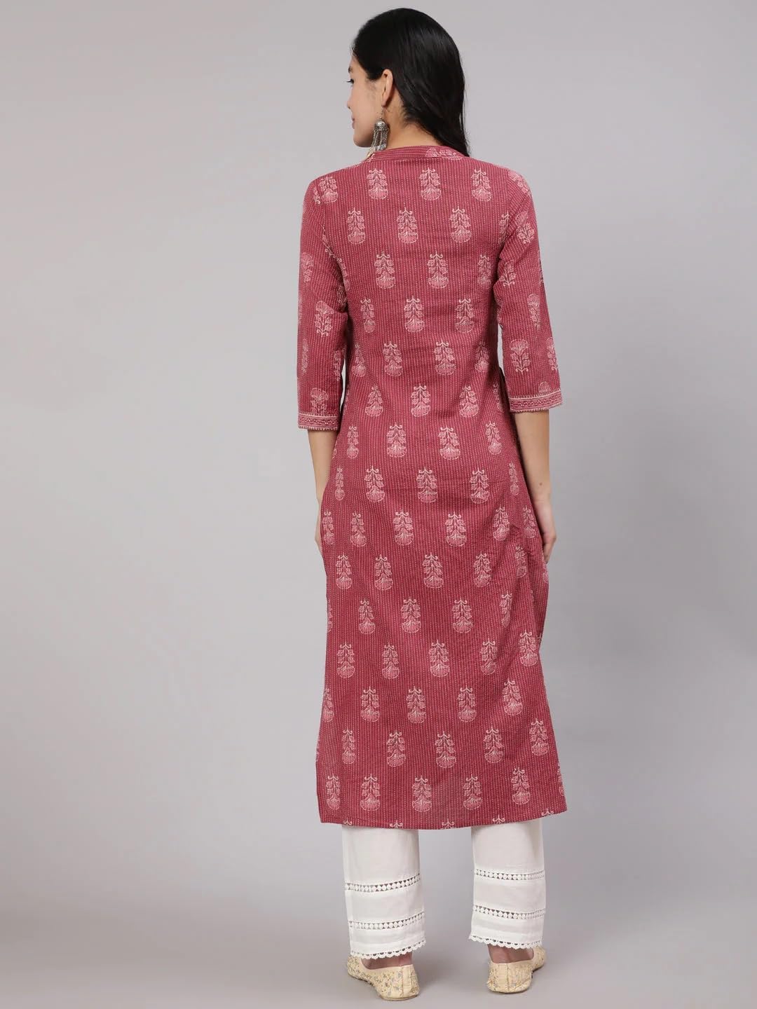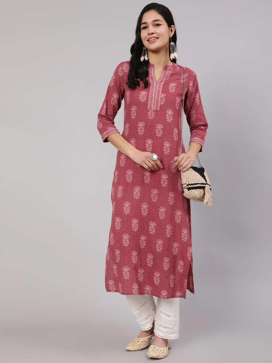 - Kurta design: Floral printed Straight shape,3/4 sleeves, 1 pocket, calf length with straight hem