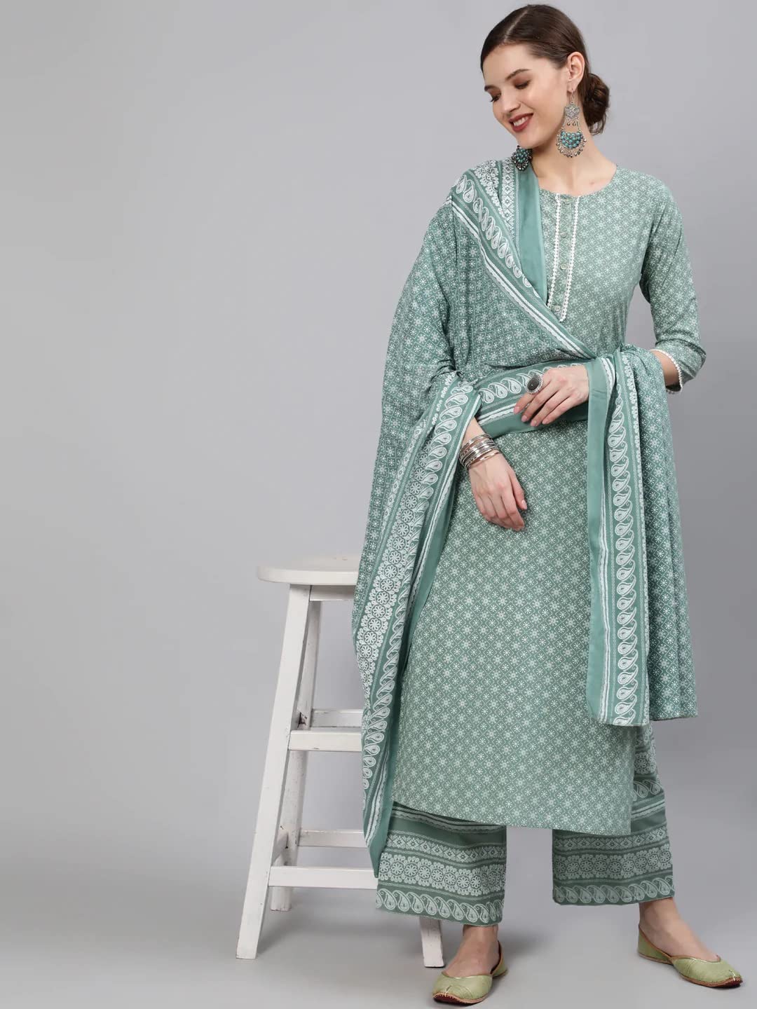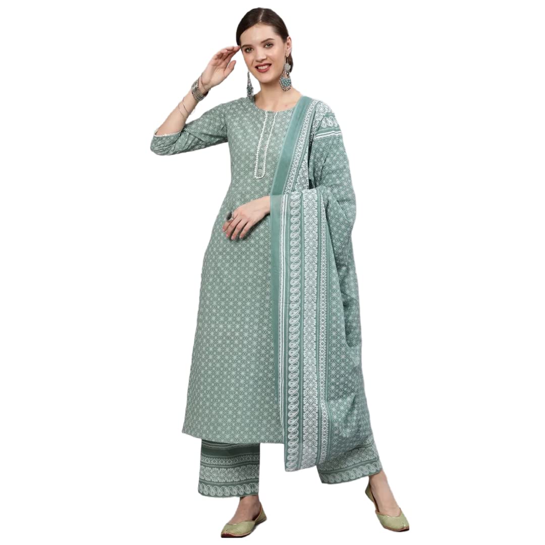 Women Kurti with Dupatta and Palazzo Set | Ladies Top Kurta Kameez Salwar Suit Bottom Pant | Ethnic Festive Traditional Party Dress