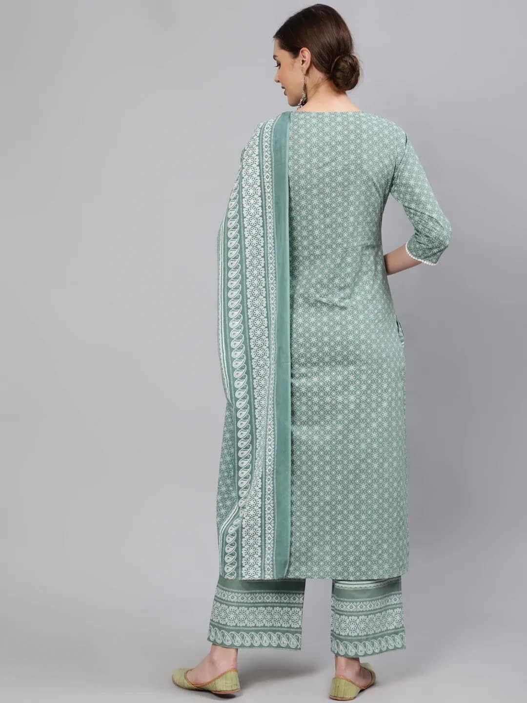 - Printed palazzos, has a partially elasticated waistband with slip-on closure. Has printed dupatta