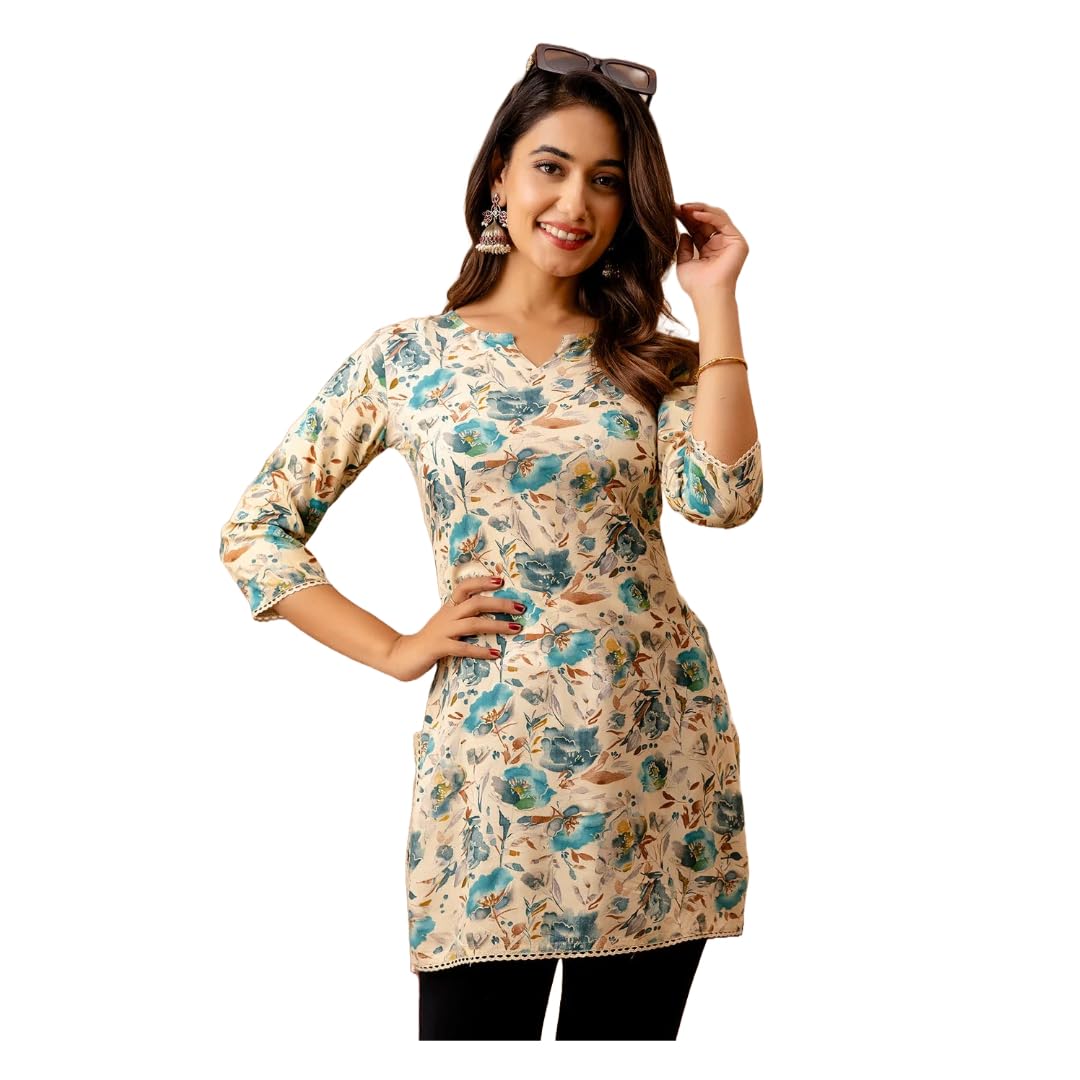Women Printed Straight Tunic Top | Ladies Kurti Kurta Blouse T-shirt | Ethnic Traditional Ready to Wear