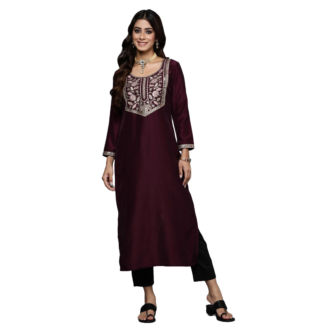 Women Straight Embroidered Kurta | Ladies Kurti Kameez Top Ethnic Ready to Wear | Suits for Casual Formal Traditional Wear