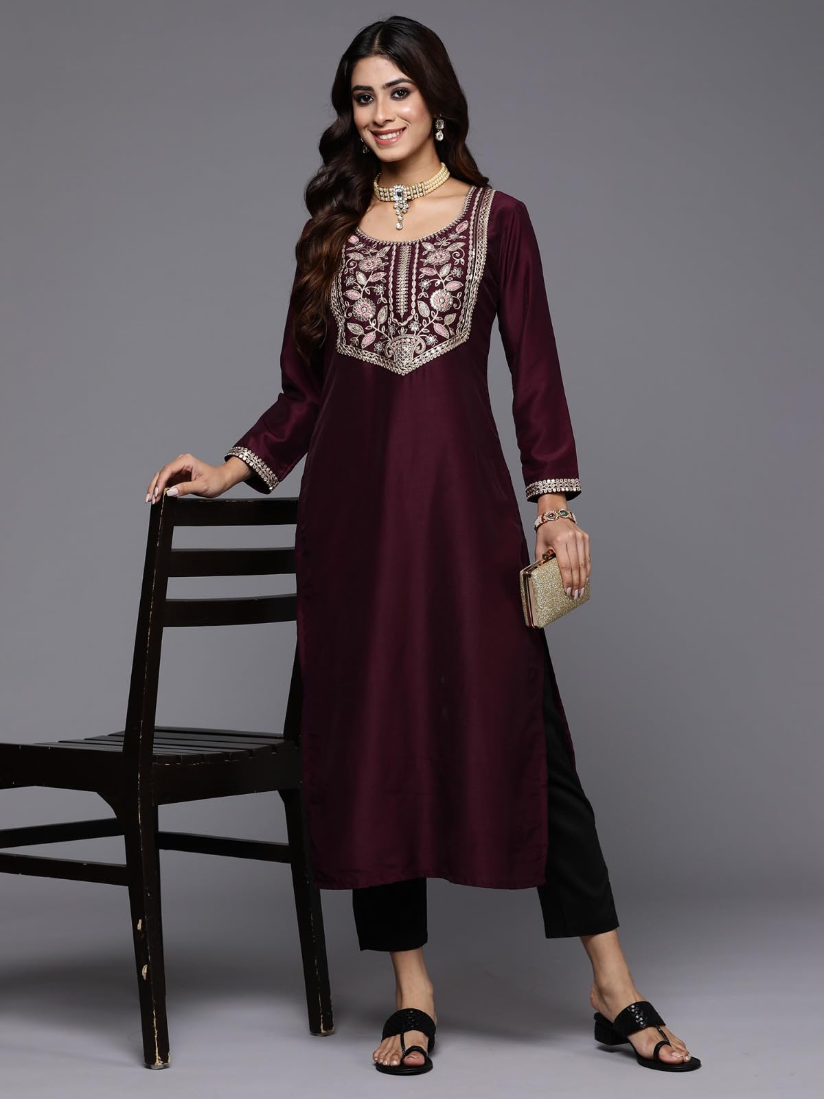 - Pattern: Yoke design Straight shape Sequinned Kurta