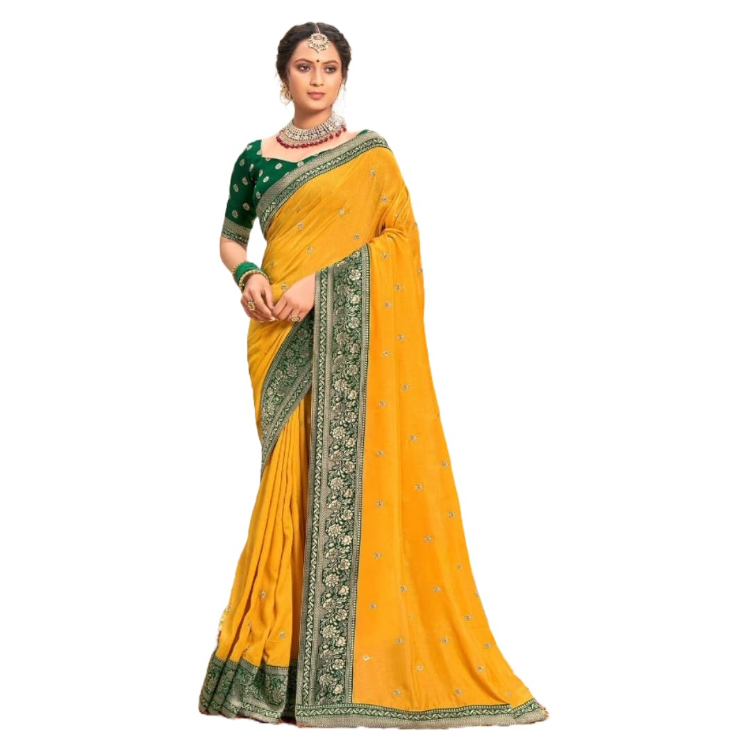 Women Zari Silk Blend Saree with Unstitched Blouse Piece | Ladies Traditional Wedding Festival Party Dress
