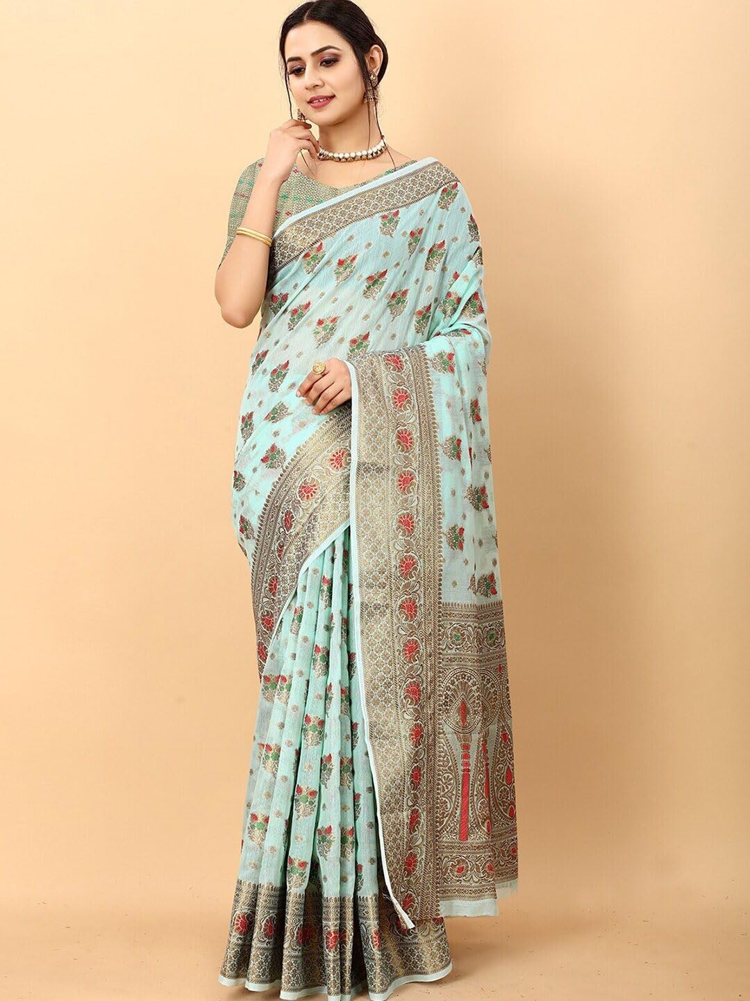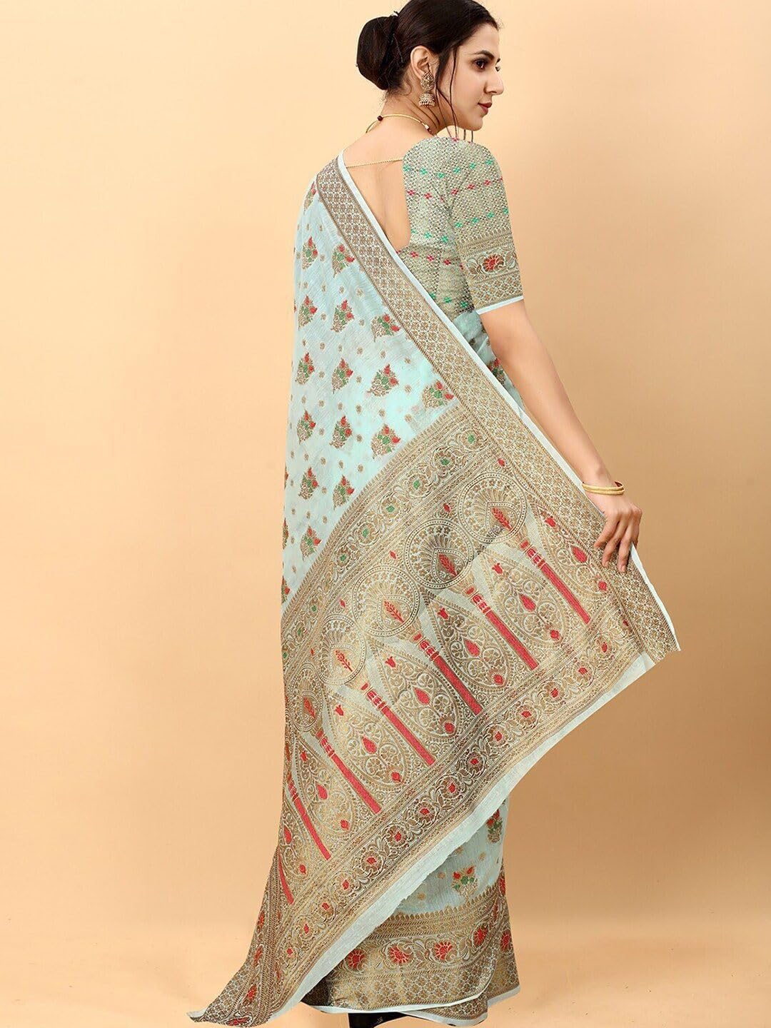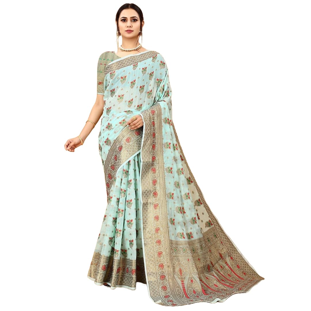 Women Zari Silk Blend Saree with Unstitched Blouse Piece | Ladies Traditional Wedding Festival Party Dress