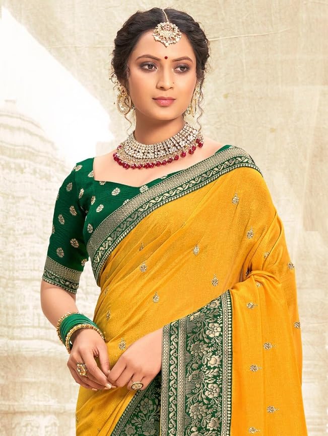 Women Zari Silk Blend Saree with Unstitched Blouse Piece | Ladies Traditional Wedding Festival Party Dress