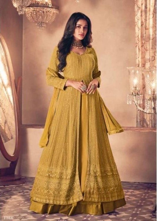 Unstitched Embroidered Partywear Gown | Designer Salwar Suit Dress Material | Ladies Shalwar Kameez Kurta with Dupatta | Traditional Wedding Festival Wear